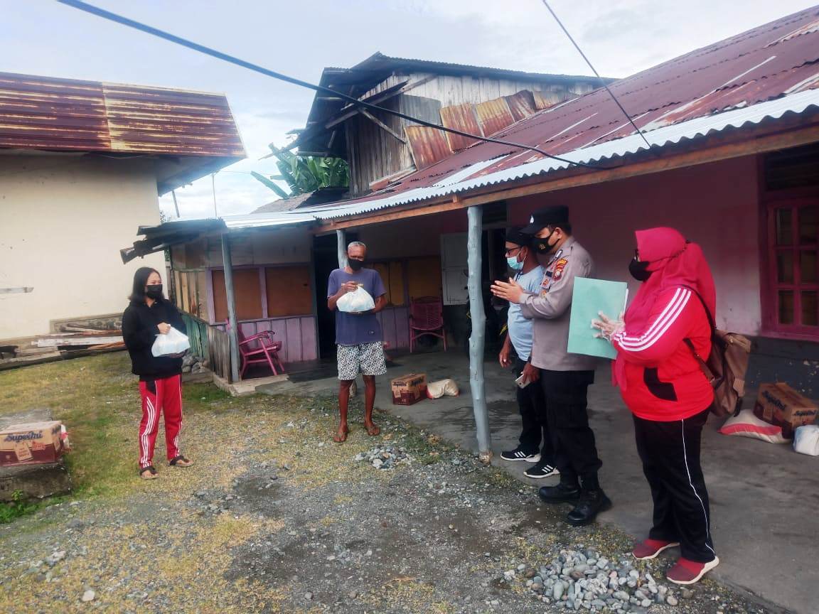Luwuk.today, Personel Polsek Bunta melaksanakan penyaluran Bantuan Sosial (Bansos) kepada sejumlah warga yang sedang menjalani Isolasi Mandiri (Isoman) di rumah, Selasa (10/8/2021). Penyaluran Bansos tersebut dilakukan bersama Lurah Bunta 1, Kecamatan Bunta, Kabupaten Banggai.