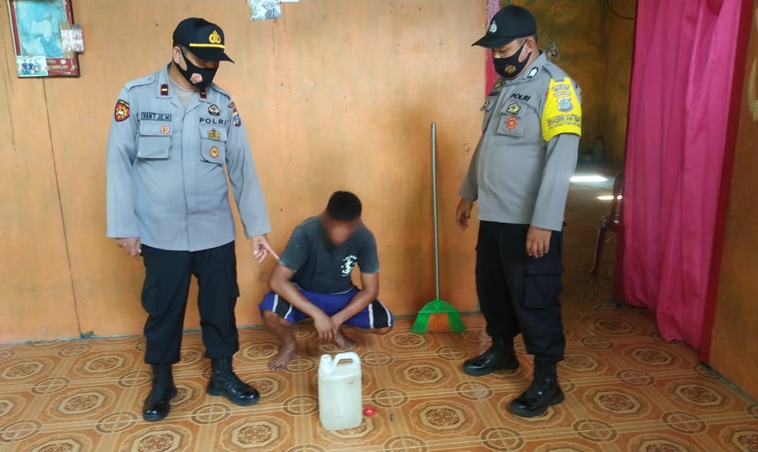 Minuman terlarang itu disimpan pelaku dalam jerigen ukuran lima liter dan botol air mineral ukuran 1,5 liter.