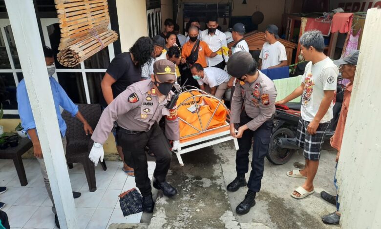 Luwuk.today, Polisi melakukan olah TKP dan mengevakuasi sesosok mayat pria gantung diri di pintu kamar di rumah tempat tinggalnya di Kelurahan Bungin Timur, Kecamatan Luwuk, Kabupaten Banggai, Senin (29/11/2021).
