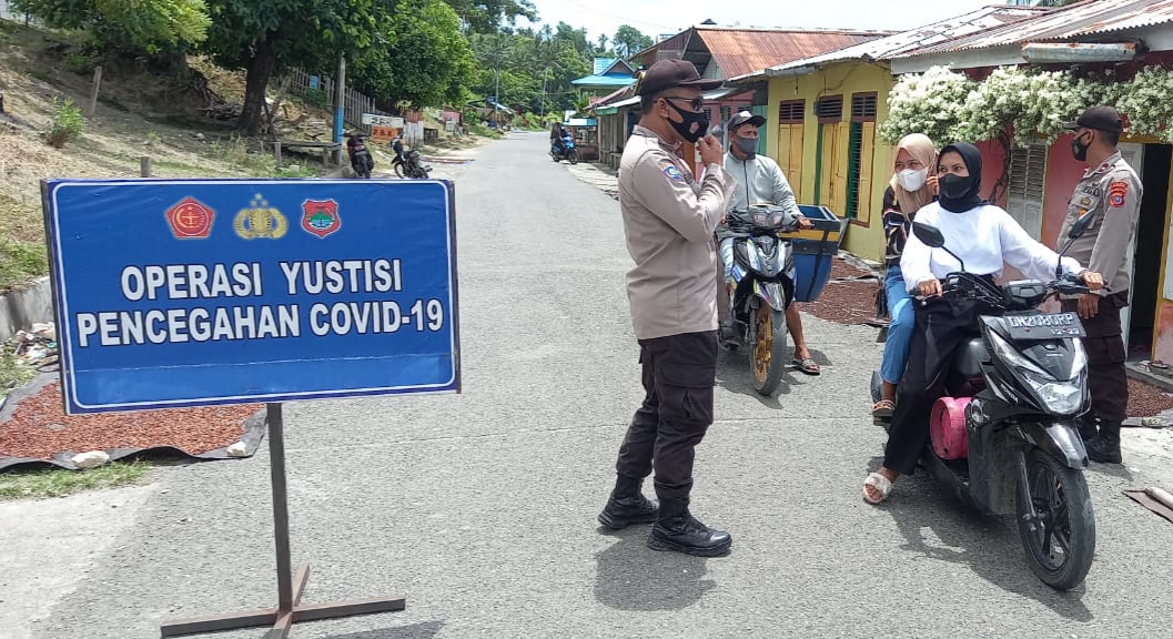 Operasi yustisi yang digelar pada Selasa (31/8/2021), di Jalan umum, Kelurahan Talang Batu, Kecamatan Balantak, Kabupaten Banggai, personel Polsek Balantak mejaring sejumlah pelanggar prokes.