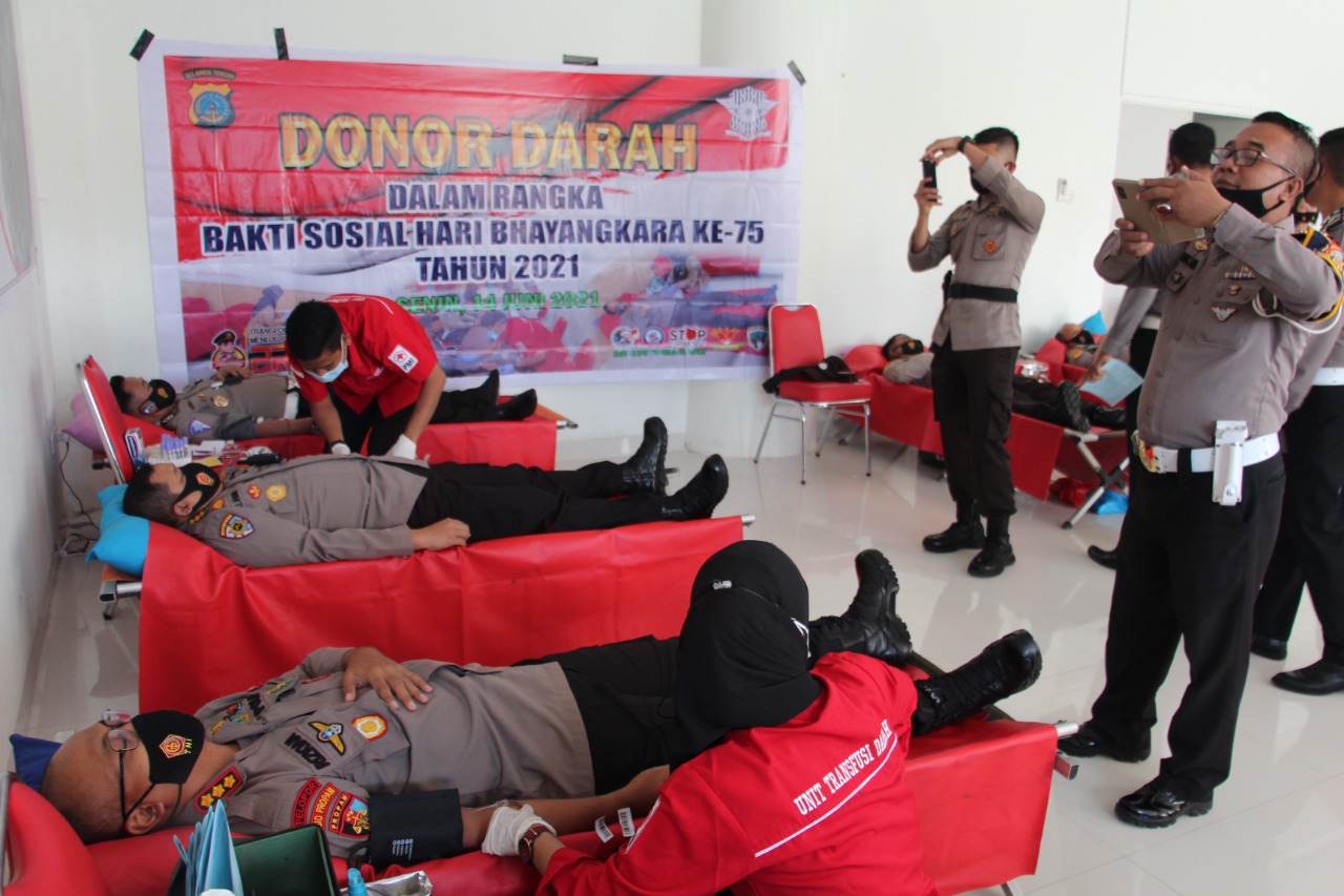 “Pelaksanaan donor darah ini dilaksanakan guna menyambut hari Bhayangkara ke 75 tahun 2021, dengan melakukan donor darah tentunya selain untuk kesehatan juga dapat membantu kepada sesama yang membutuhkan,