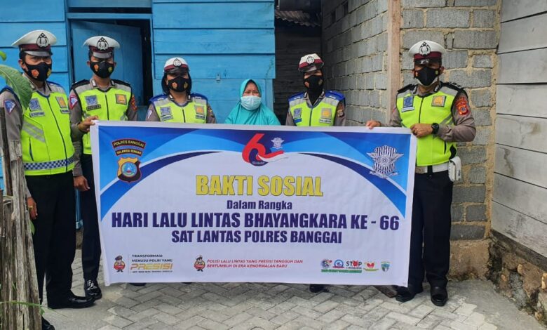 Luwuk.today, Jelang peringatan hari Lalu Lintas Bhayangkara ke-66 jajaran Satuan Lalu Lintas Polres Banggai, menggelar kegiatan bakti sosial berbagi kepada masyarakat yang kurang mampu sekaligus terdampak Covid-19, Jumat (17/9/2021).