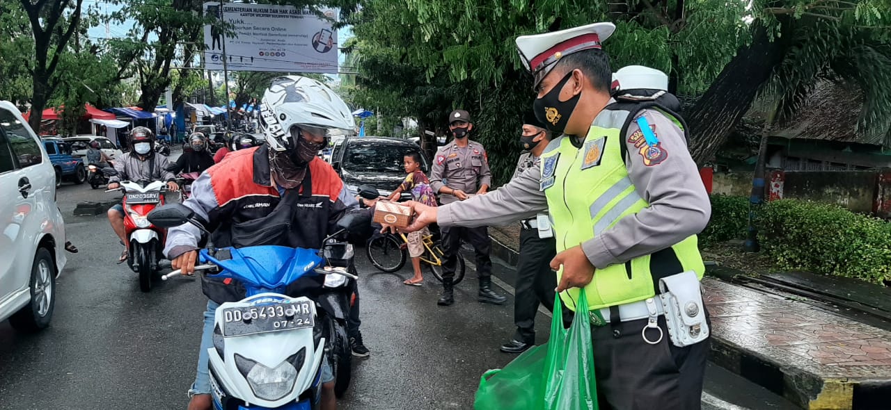 Selain mebagikan takjil, dalam kesempatan tersebut personel yang tegabung dalam Operasi Keselamatan Tinombala 2021 itu memberikan edukasi keselamatan berlalulintas dan kedisiplinan menjalankan protokol kesehatan terkait Covid-19.
