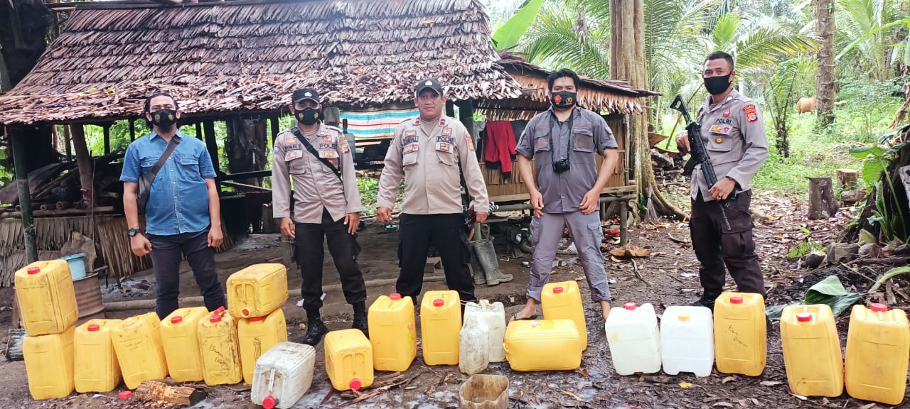 Satu Ton dan Tiga Pondok Penyulingan Miras di Simpang Raya Dimusnahkan Polisi