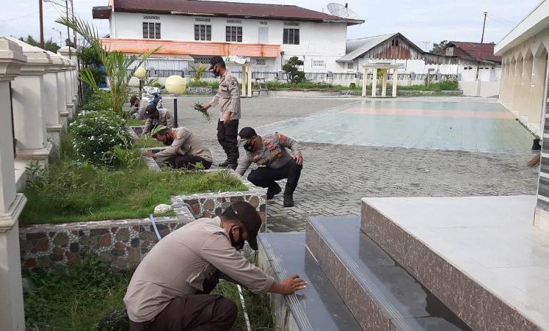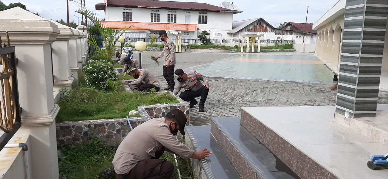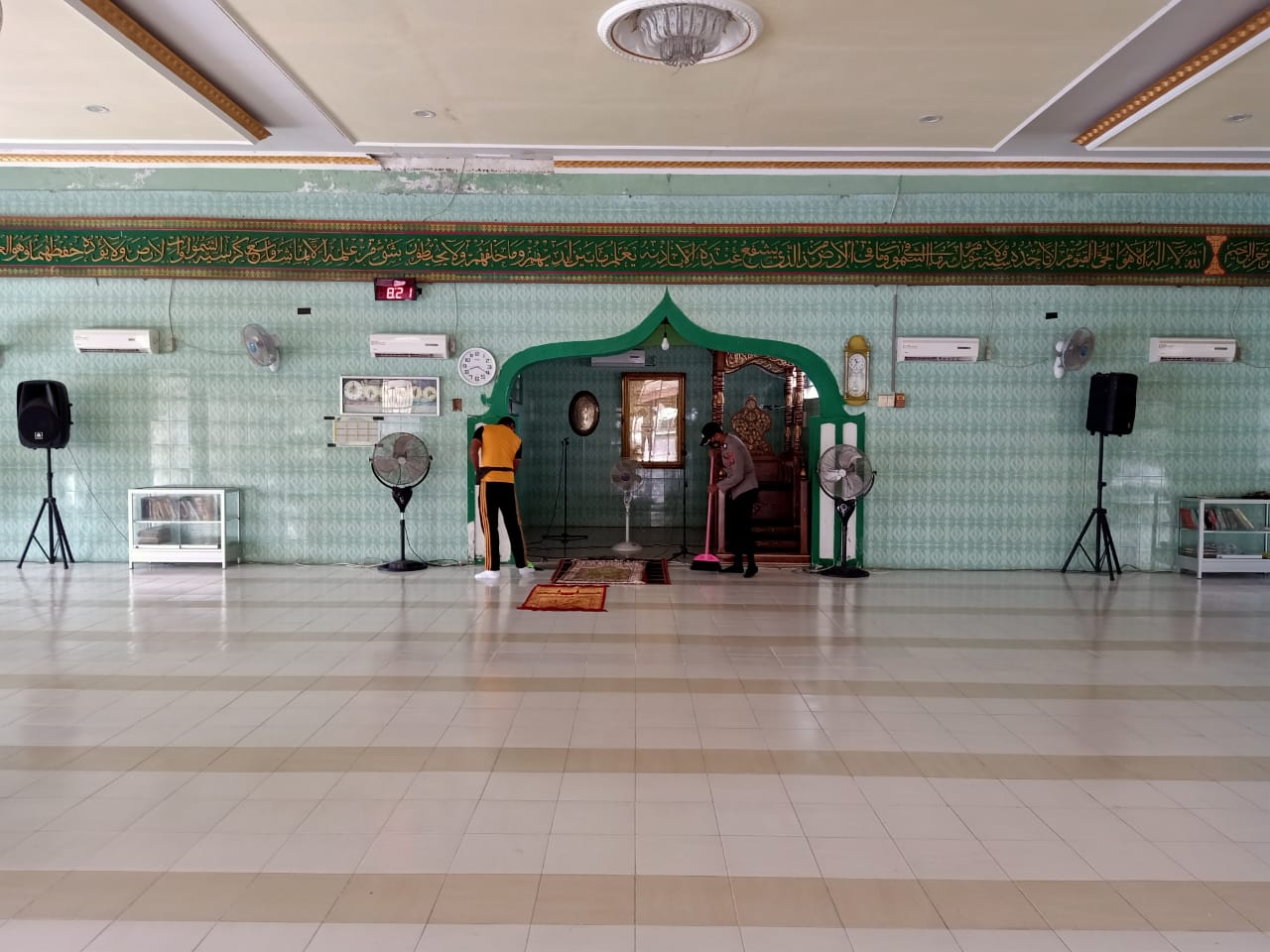 “Jadi bukan hanya di halaman saja, tetapi di bagian dalam masjid juga di bersihakan,” kata Iptu Yoga.