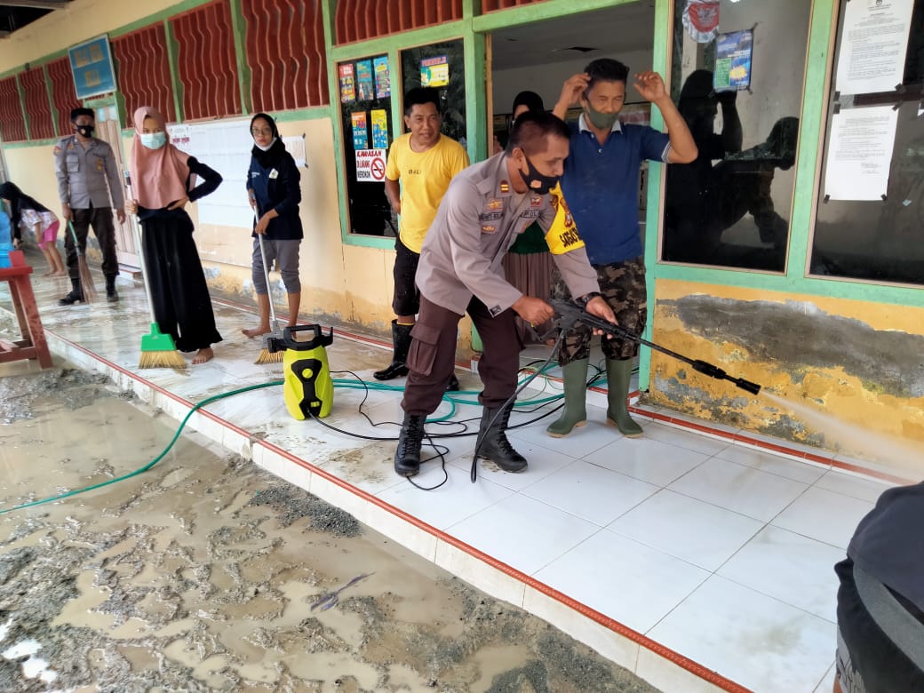 Kapolsek Nuhon Iptu Alfret Bolang mengatakan, pembersihan itu dilakukan akibat dampak dari luapan air sungai Desa Bella sehingga menggenangi Kantor Desa, rumah warga hingga ke badan jalan.