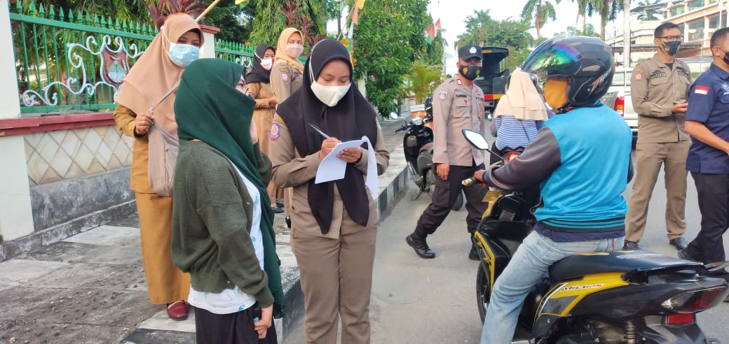 Bagi masyarakat yang terkena razia, kata perwira tiga balak ini, diberikan sanksi teguran lisan dan tertulis, menghafal Pancasila hingga kerja sosial yaitu memberihkan sampah disekitar lokasi operasi.