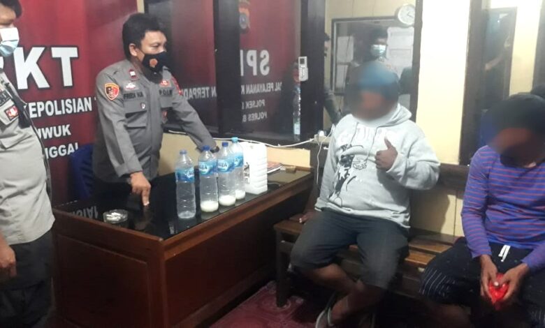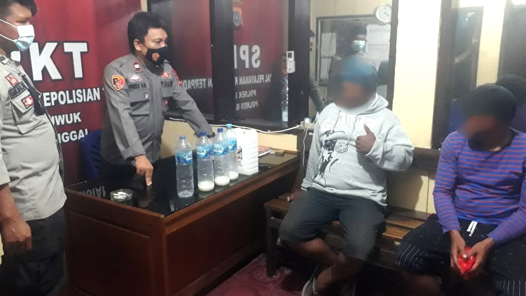 Luwuk.today, Aparat Polsek Luwuk mengamankan dua warga lantaran meneguk minuman keras (miras) tradisional jenis pongasi di kompleks pelabuhan rotan Luwuk, Kecamatan Luwuk, Kabupaten Banggai, Senin malam (21/6/2021).